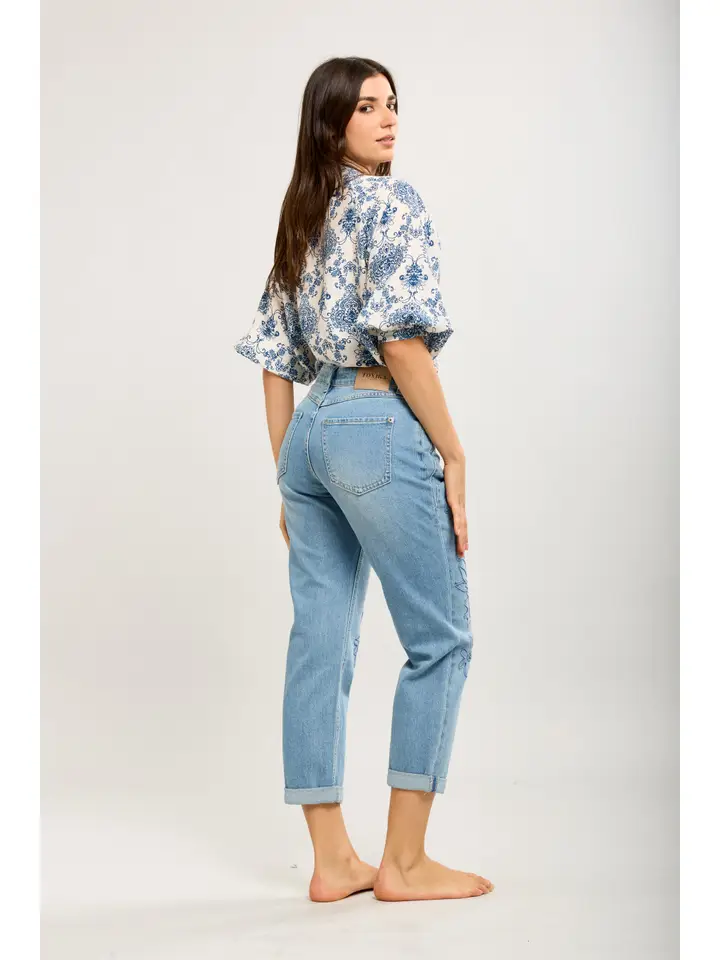 Toxik3 Jeans med Broderade Blommönster
