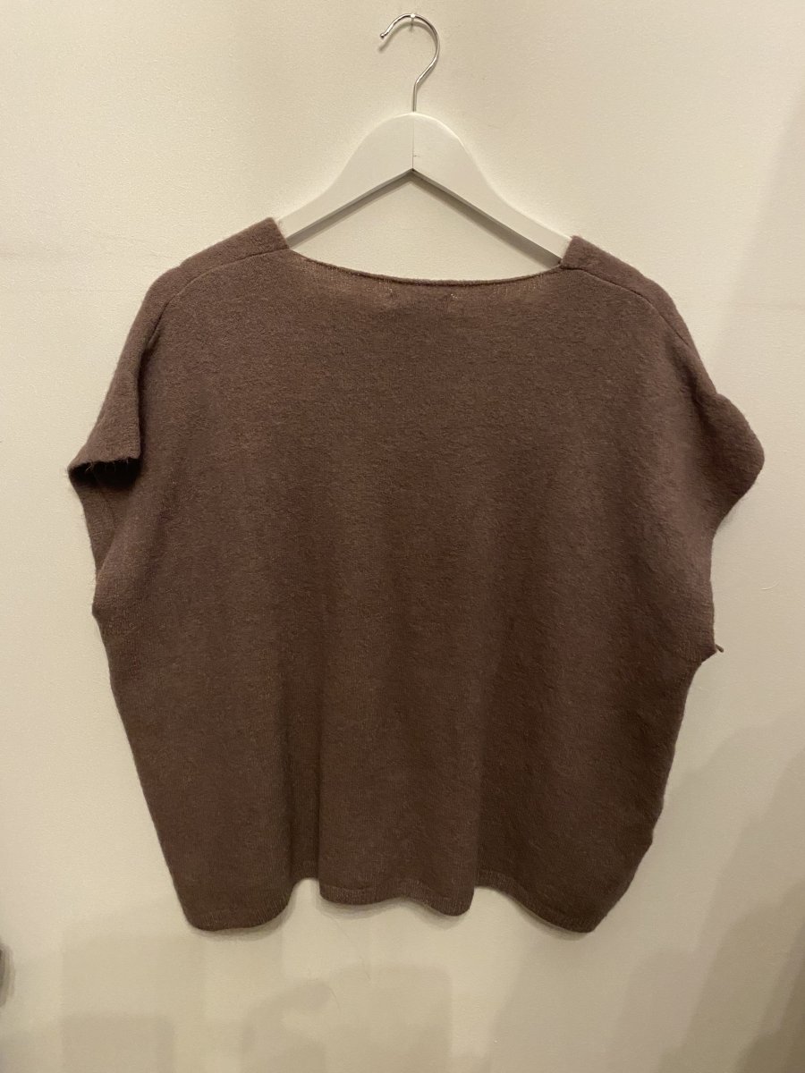 Stickad väst med knappar framtill och med lös passform.